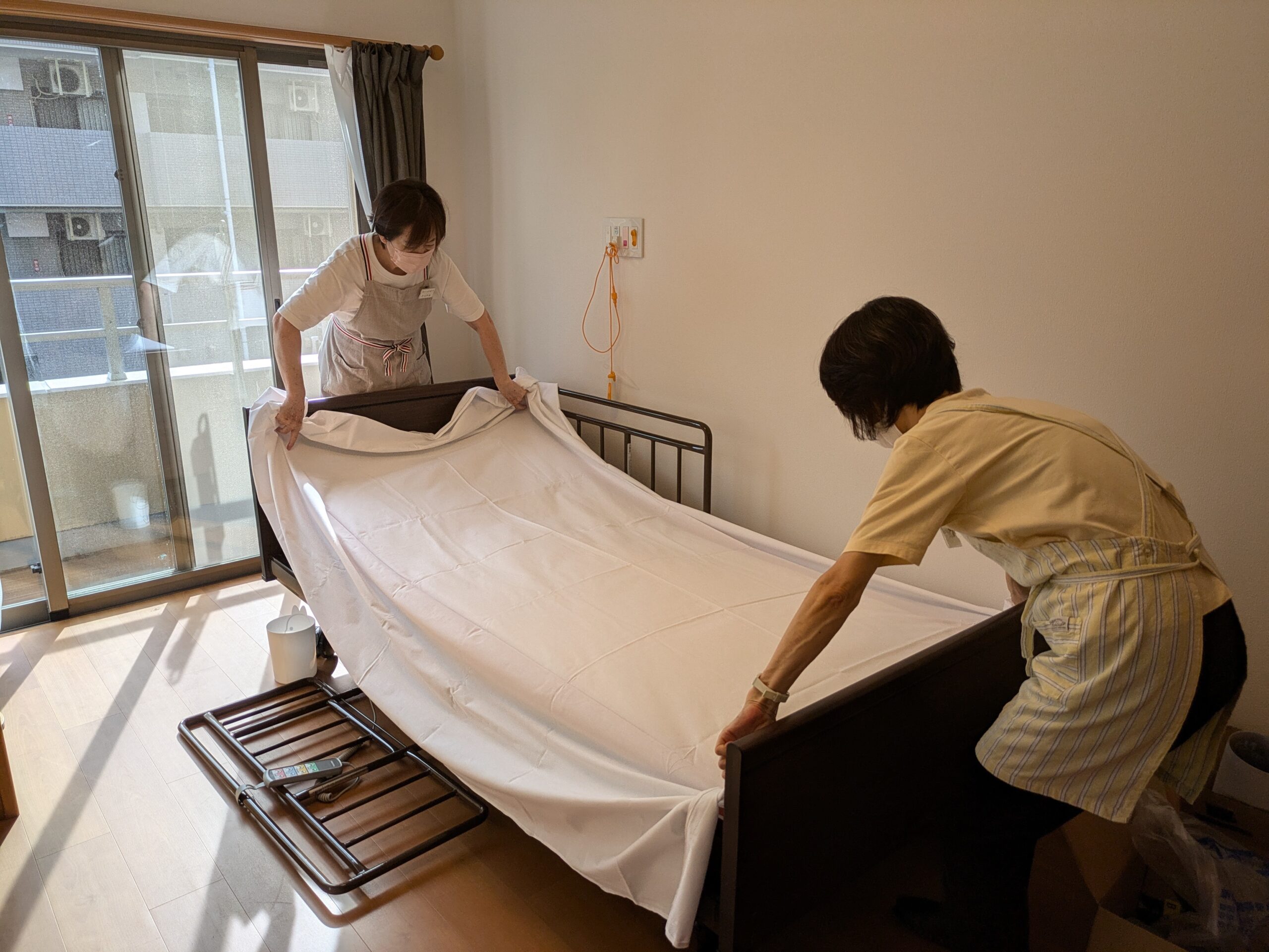 介護居室清掃では、リネン交換も行ない、気持ちのいいお部屋で過ごして頂けるよう、心を込めてお掃除しています。
