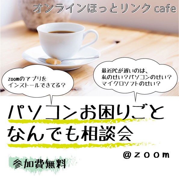 オンラインほっとリンクcafeも企画開催しています。ITやパソコン、ネットのこと、スマホのこと、事業にかかわることからプライベートでの使用まで、「こんな時どうすれば?」というお悩みをざっくばらんに、お茶しながらおしゃべりする会です。(お茶はご自分で準備していただいています)無料です!cafe開催の際には事前にLINE公式アカウントでお知らせしますので、チェックしてくださいね。