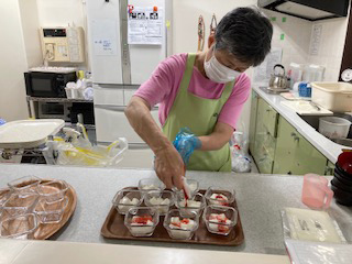 ・ご利用者の見守りをしながら食事の配膳や毎月の手作りおやつの提供。