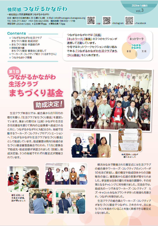 機関紙3号発行のお知らせ 2026.01.30 2026.03.03 機関紙3号が発行されました。 第1回となる生活クラブまちづくり基金がメインのトピックとなっています。 ぜひご覧ください! ※画像クリックでPDFをダウンロード Post Share Hatena Pocket RSS feedly Pin it 記事のタイトルとURLをコピーする 【W.Coスクール】年度末決算と監査 前の記事 都筑:2月24日(火)地域で働く説明会を開催します 次の記事 新着のお知らせ 都筑:2月24日(火)地域で働く説明会を開催します 2026.02.09 【W.Coスクール】年度末決算と監査 2026.01.09