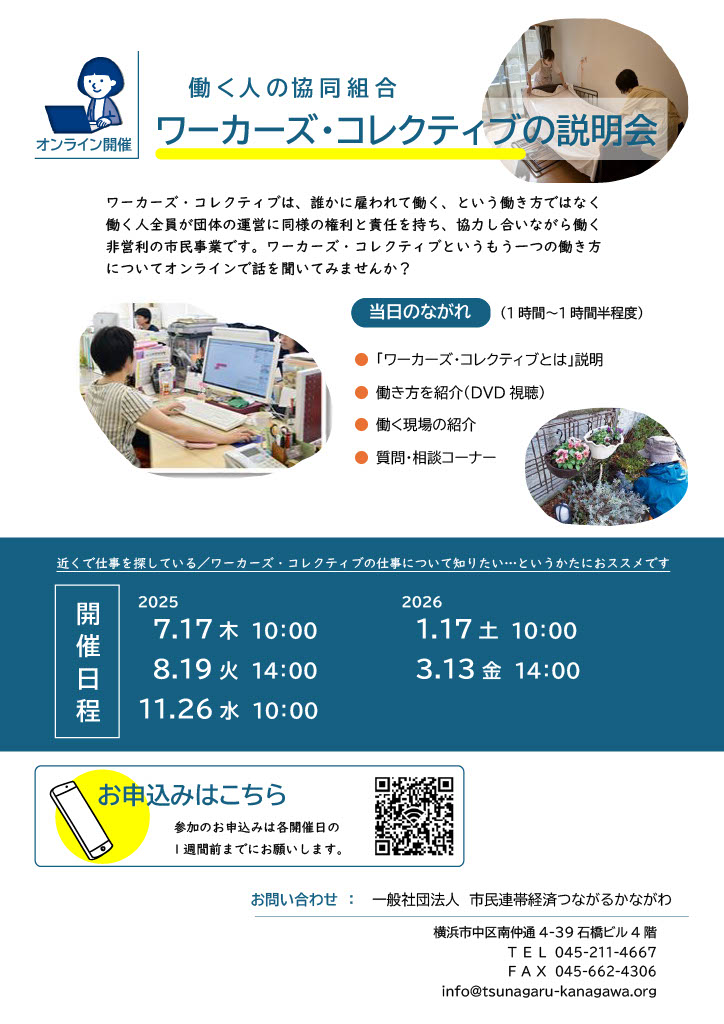 ワーカーズ・コレクティブというもう一つの働き方について、オンランで話を聞いてみませんか?